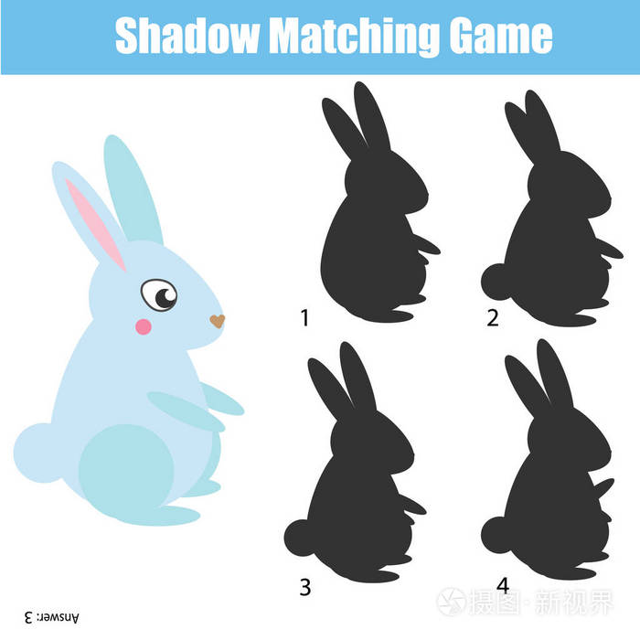 阴影的匹配游戏.教育儿童游戏与兔字符