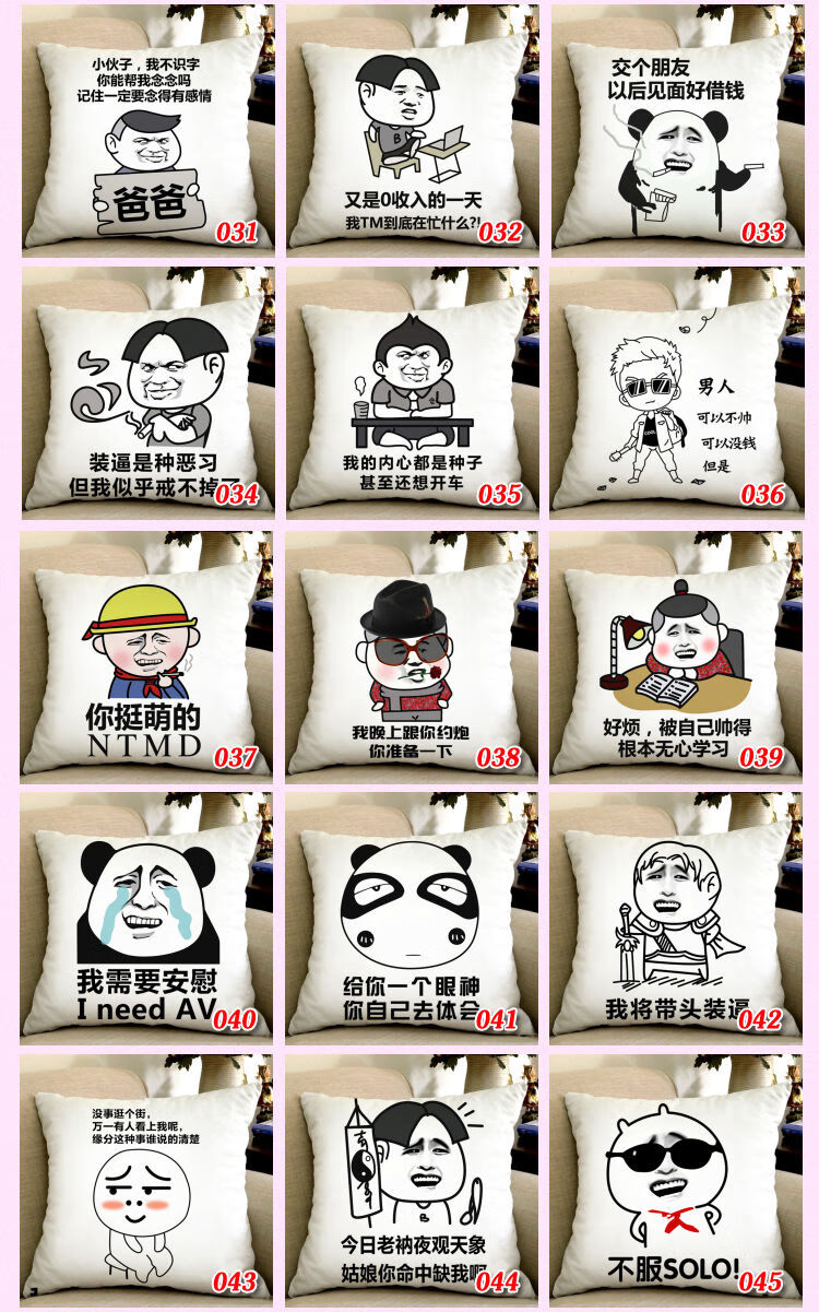 暴走漫画搞笑抱枕表情包个性文字靠枕恶搞馆长笑脸枕头 越到深夜哥越