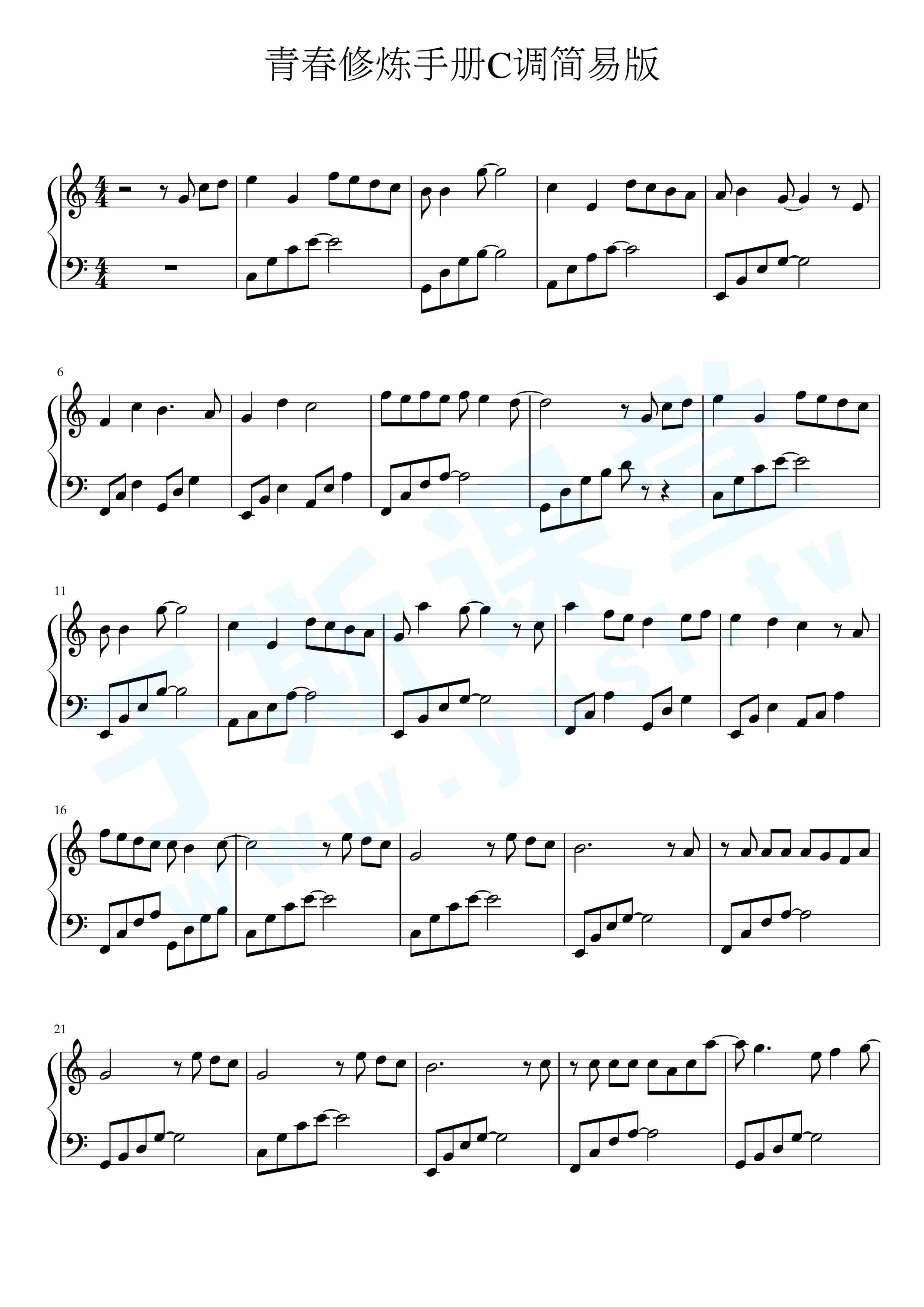 钢琴谱 - 青春修炼手册(c调版)