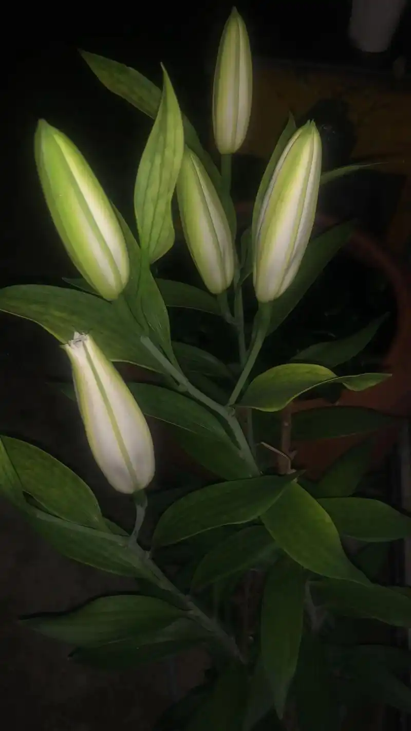 百合花 #香水百合 记录老公养的第一株白色百合盛开的过程. - 兑趑