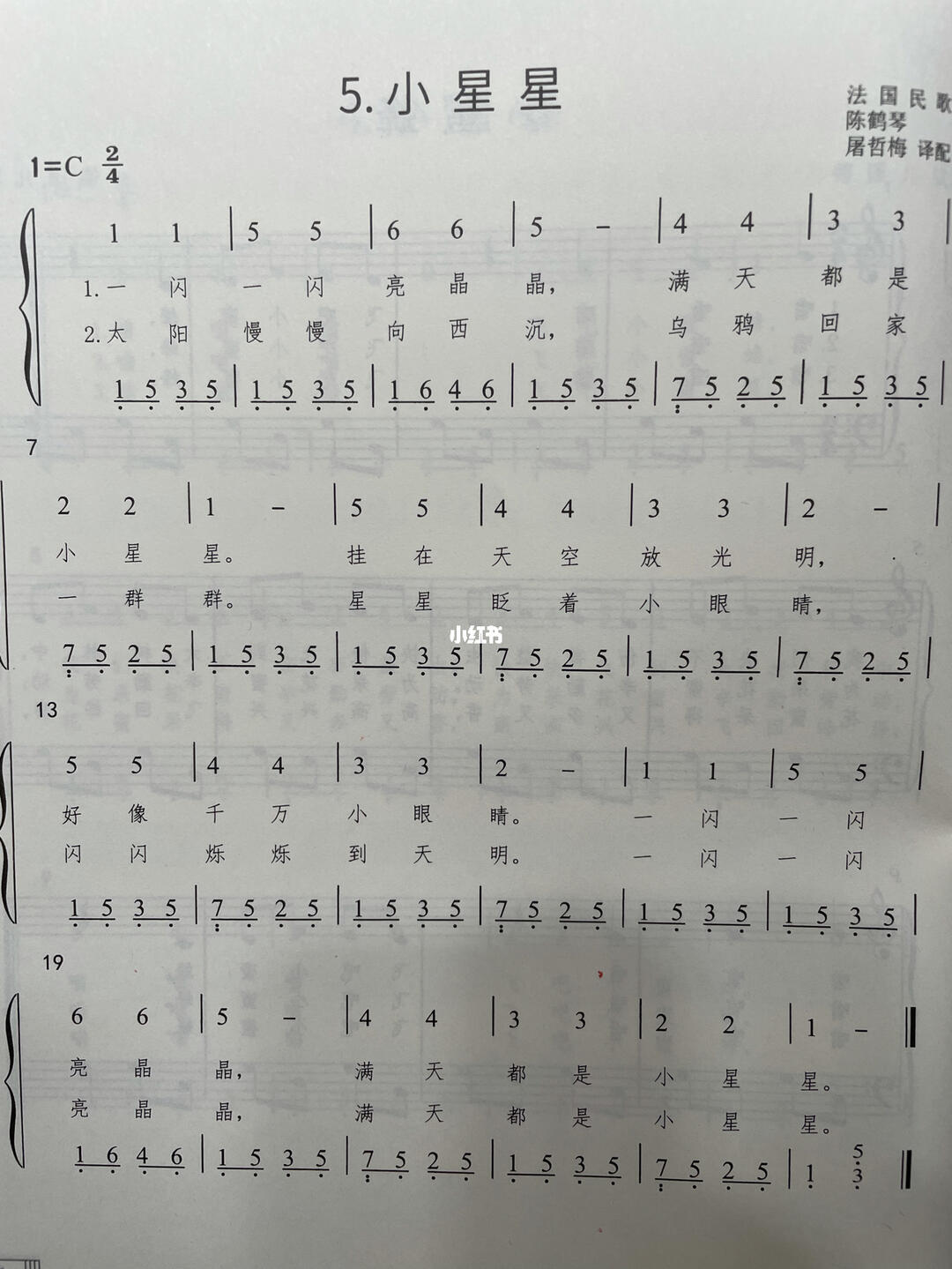 儿歌钢琴简谱带左手伴奏小星星和看星
