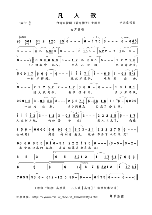 凡人歌_简谱_搜谱网