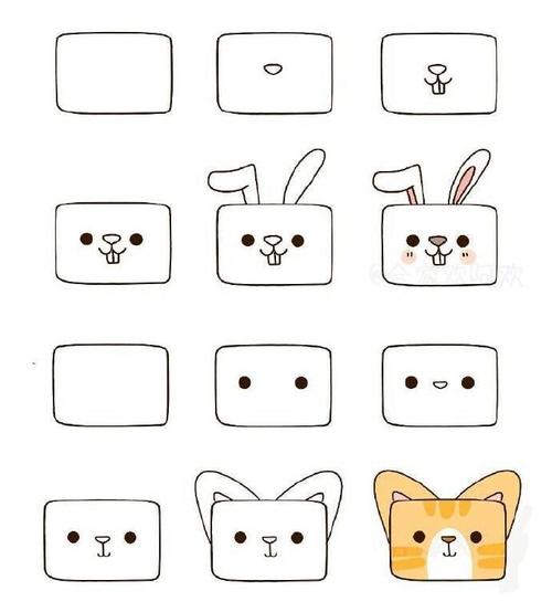 用两种不同的长方形画出不一样的可爱63 6165的小动物简笔画