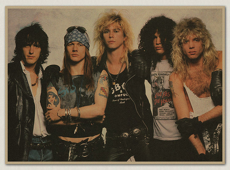 枪花乐队 枪炮与玫瑰乐队gnr 摇滚怀旧复古牛皮纸海报 装饰挂画