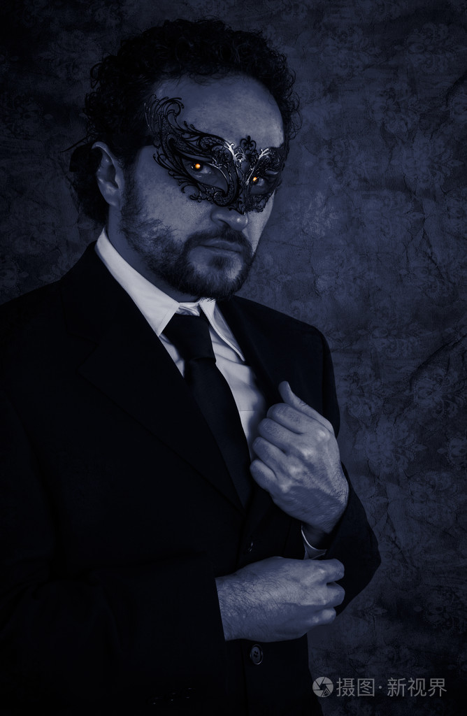 吸血鬼蒙面神秘男子和优雅的黑色西装