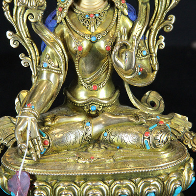 纯手工白度母佛像尼泊尔释迦打造纯铜宝石密宗供奉居家7寸摆件