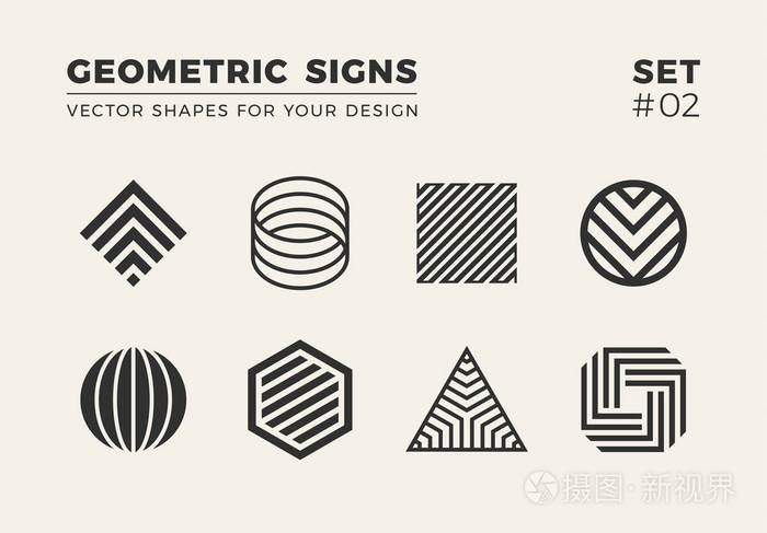 一组八种极简主义的时尚形状. 时尚矢量标志标志标志为您的设计.
