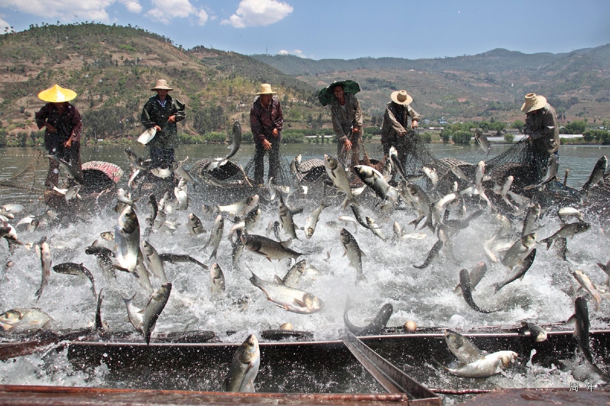 江西鄱阳渔民收获今冬第一网鱼跃人更欢