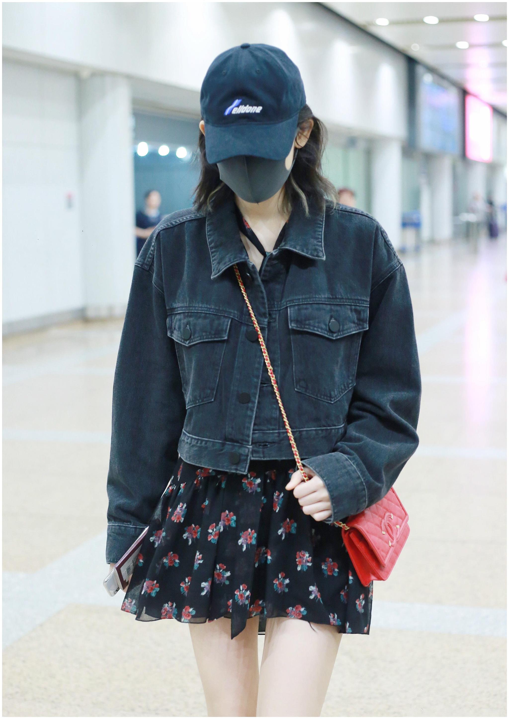 古力娜扎机场秀腿,裙子上的线头太刺眼,网友:明星也穿地摊货?