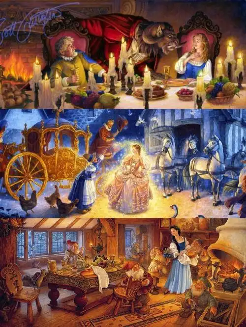 迪士尼壁纸|手绘插画ins 王子与公主的童话爱情 cr:@ -阿莘