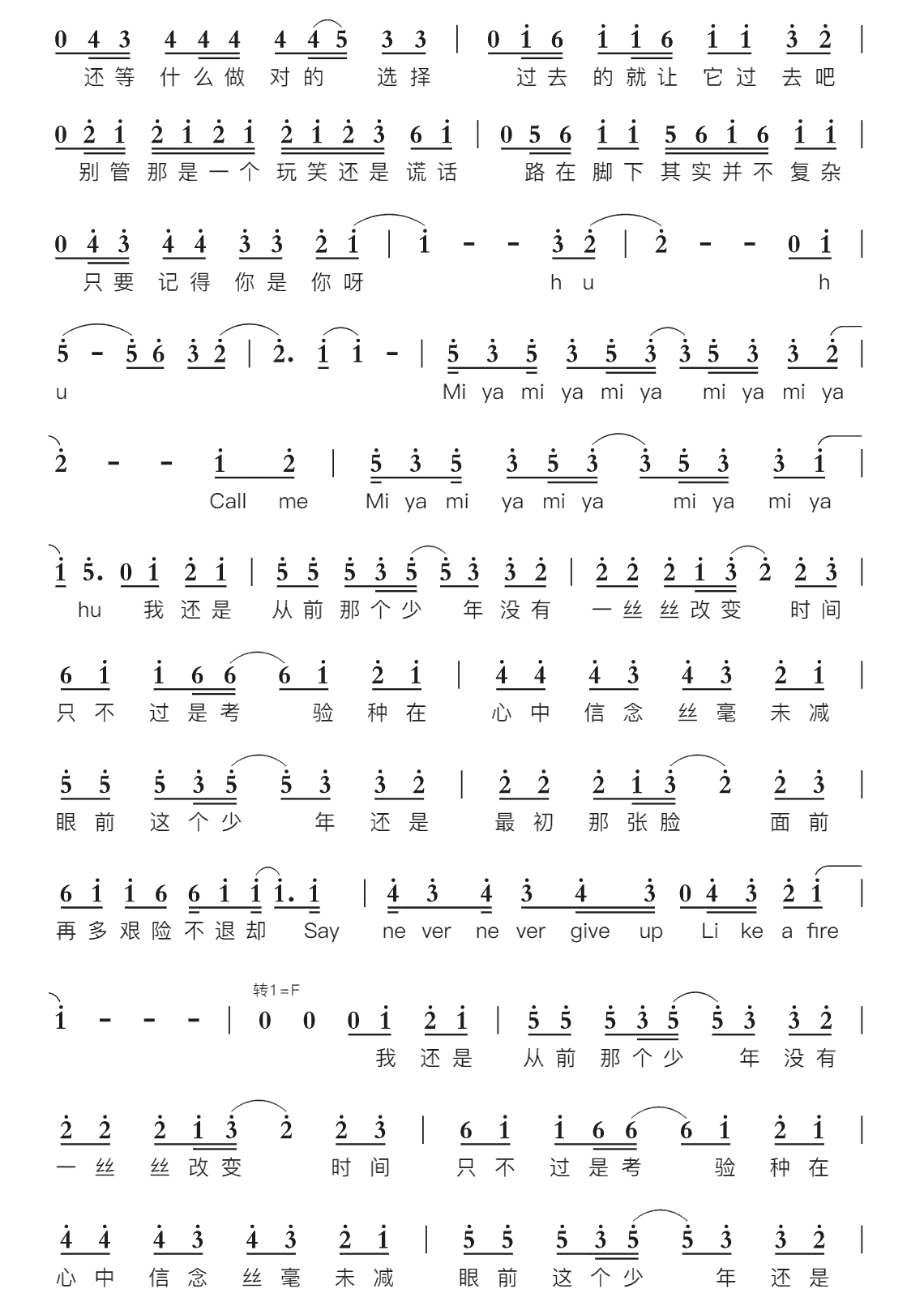 少年歌词简谱