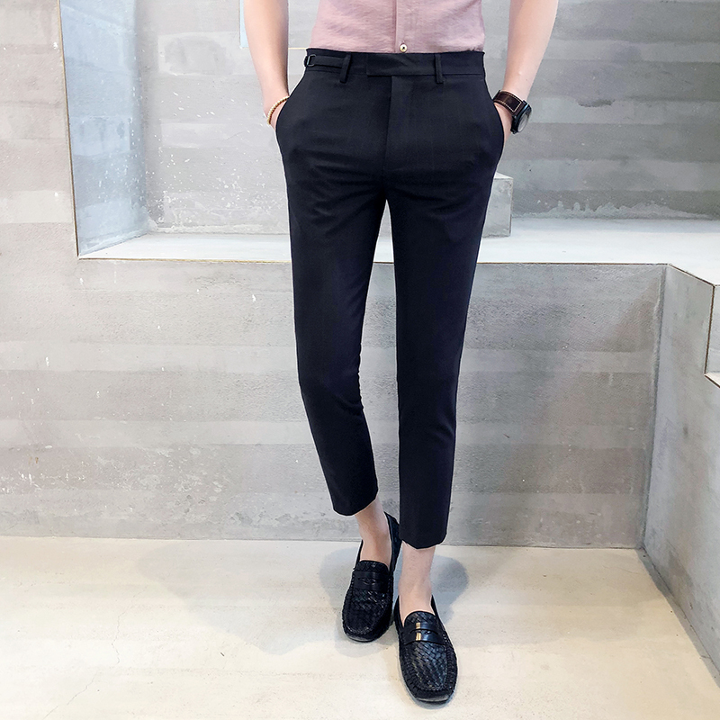 裤子男韩版潮流修身薄款男士休闲裤九分男裤夏季长裤小脚西裤男