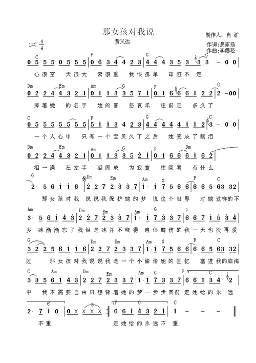 那女孩对我说简谱 黄义达演唱