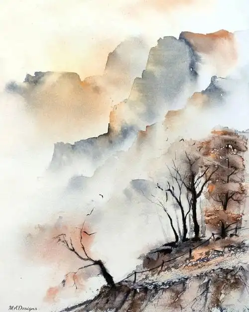 层峦叠翠的山峰怎么画?风景水彩图文步骤有哪些?
