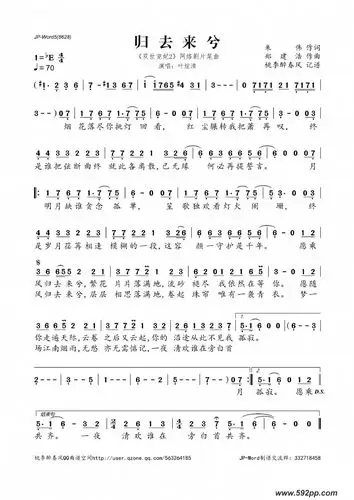 归去来兮简谱歌词花粥演唱谱友火中莲lily上传