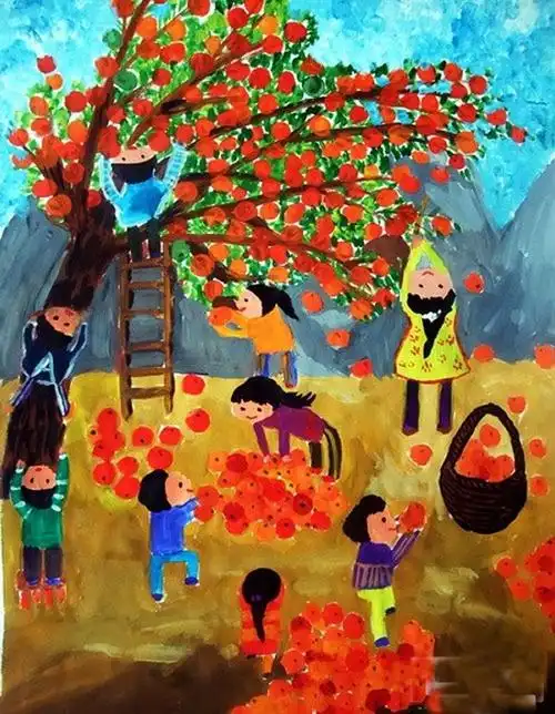 秋天果园里丰收的景象儿童画