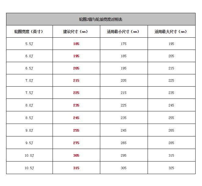 轮胎改装规格对照表