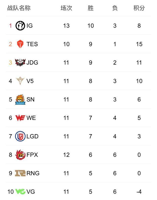 edg成功让1追2,获得本场比赛的胜利,恭喜edg. 以下是最新的排行榜