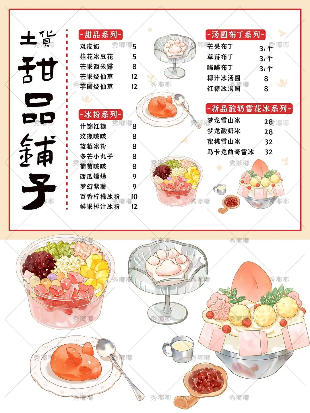 甜品店菜单