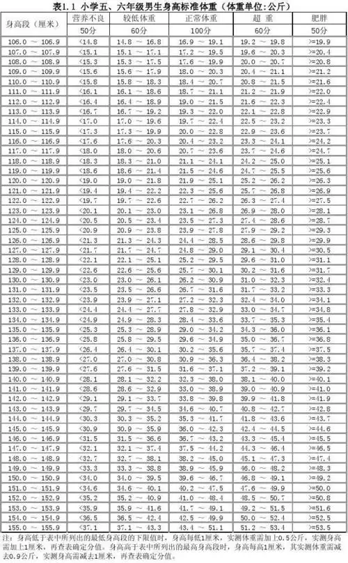 男性160cm以上标准体重表,越接近标准越健康,超标1项运动可弥补