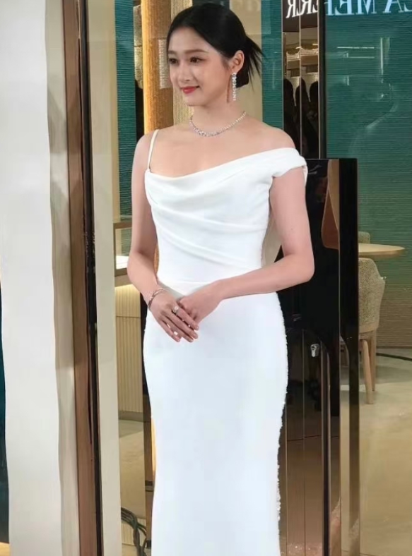 8月1日,上海,关晓彤出席某品牌活动,身穿一袭长款纱裙似小仙女,生图