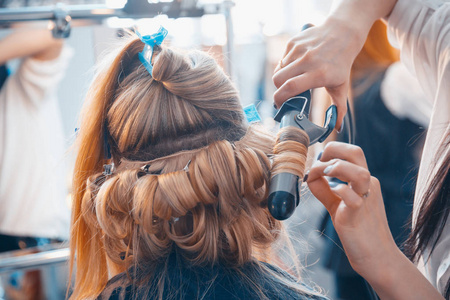 理发师对一个年轻女孩做头发延伸照片
