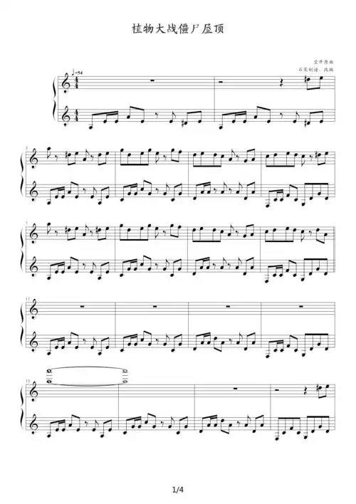 植物大战僵尸屋顶 c调_植物大战僵尸屋顶 c调简谱_植物大战僵尸屋顶 c