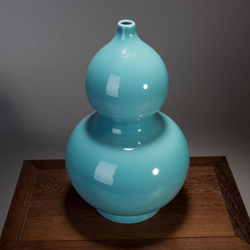 天青釉葫芦瓶 江西省陶瓷工艺美术大师作