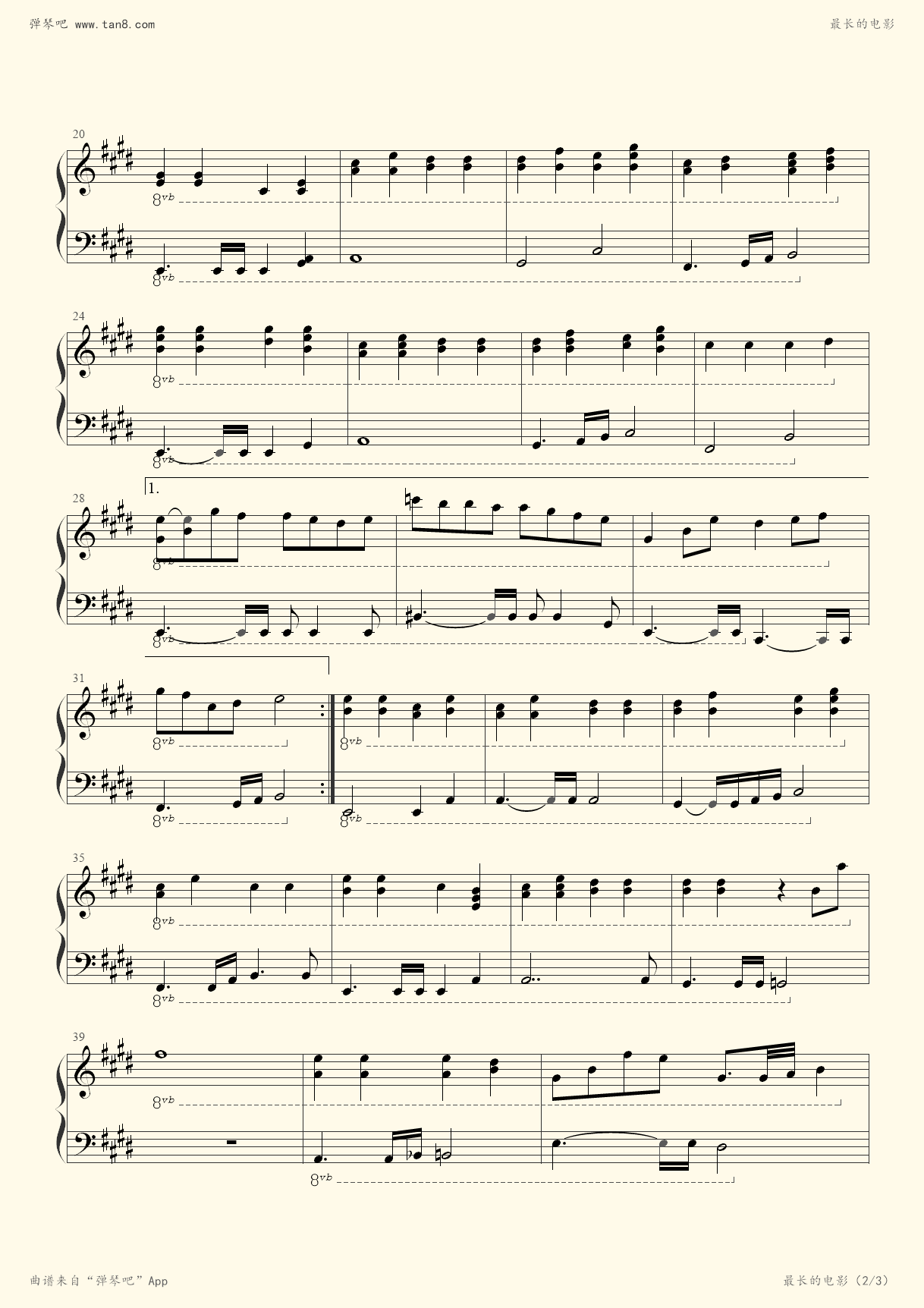 最长的电影钢琴弹唱五线谱