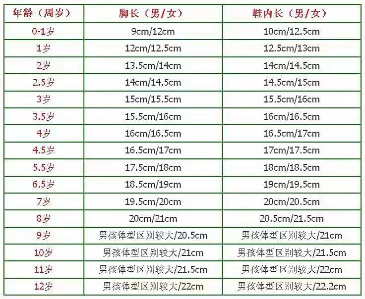 2,一般儿童国际尺码对照表数据脚内长为11cm,鞋号为12码,脚内长115cm