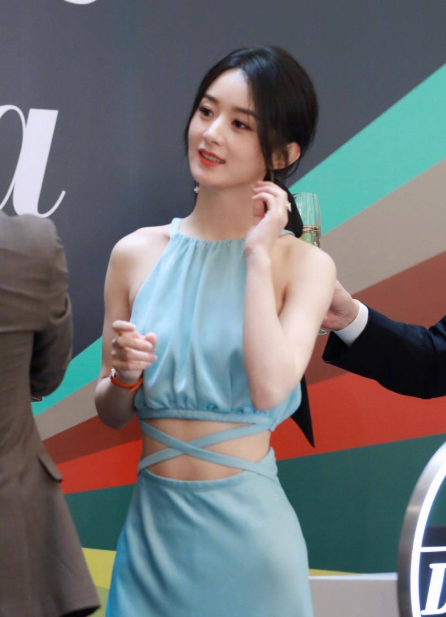 赵丽颖出席活动生图明艳动人露肩还不够还要露出蚂蚁腰