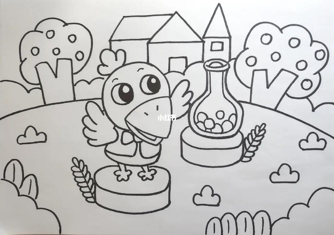 绘本故事 乌鸦喝水 创意儿童画 简笔画 线描