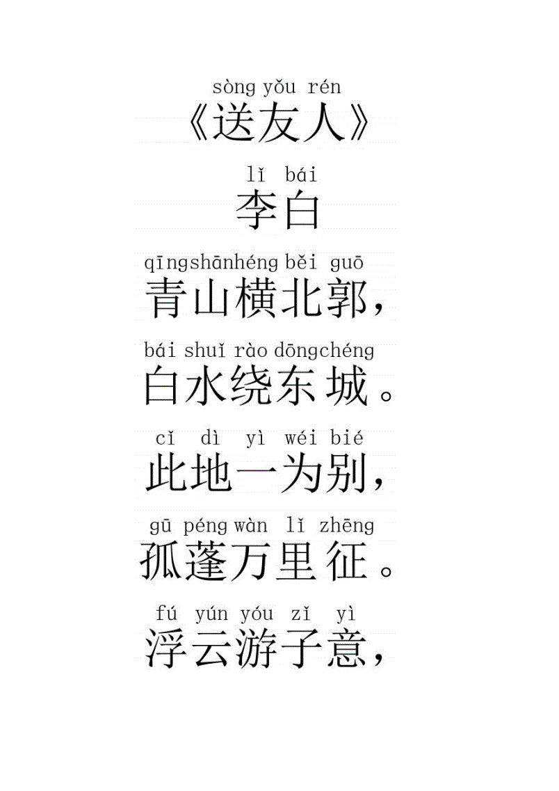 中学生必背古诗拼音版李白送友人