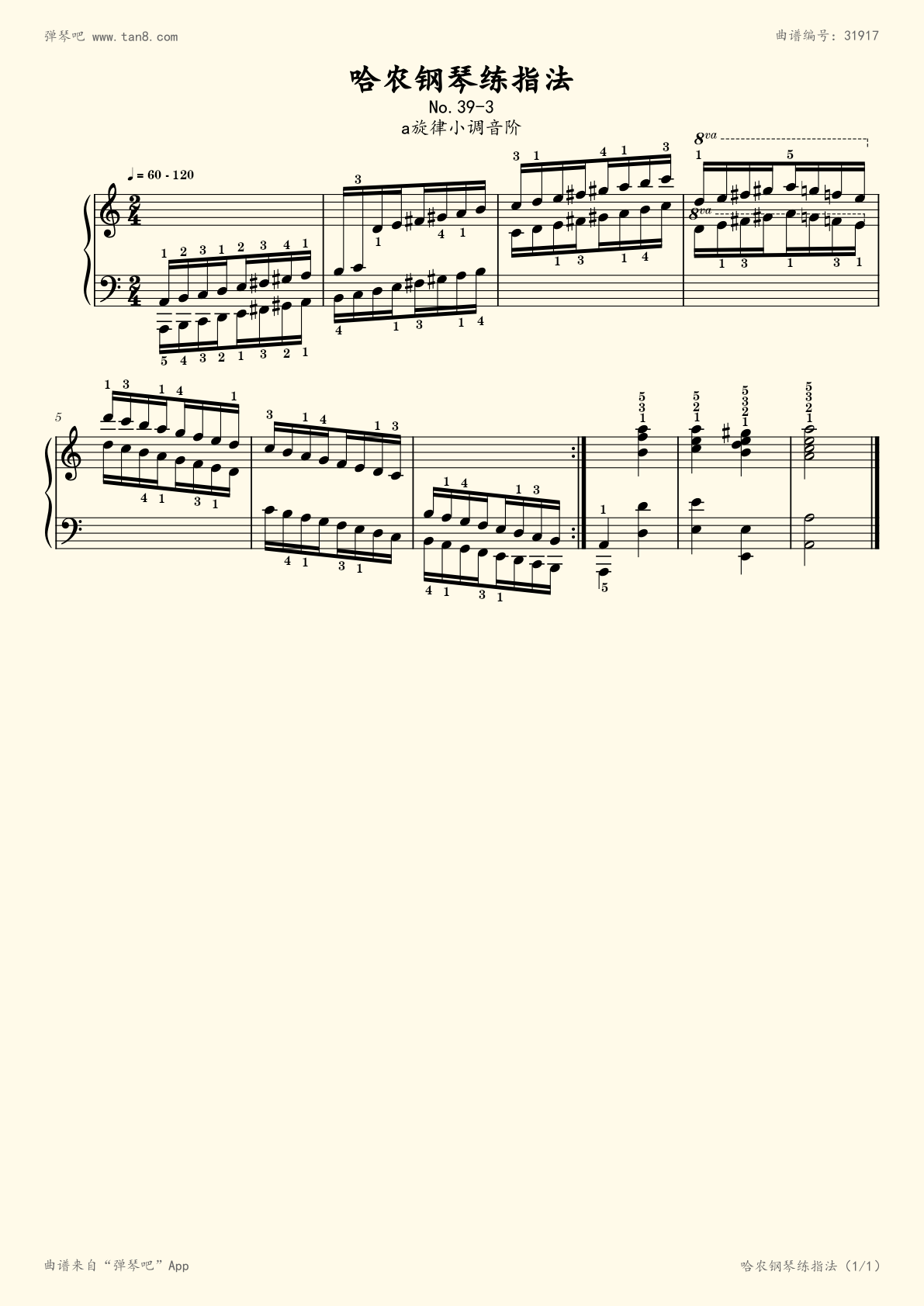 钢琴谱 - no.90-2 a小调音阶(拜厄钢琴基本教程)