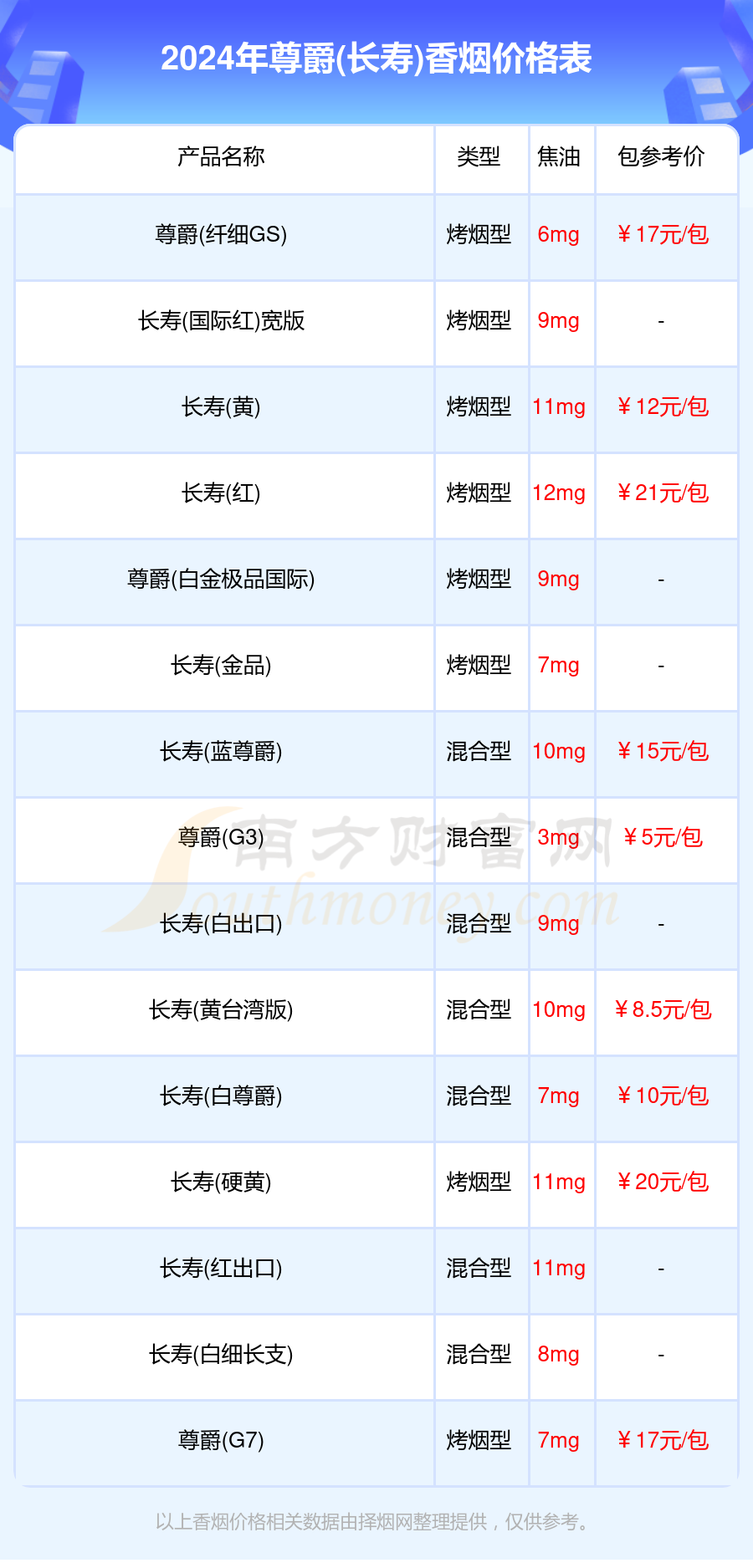 长寿(蓝尊爵)9,长寿(尊爵10号)10,尊爵(g7)本站提供的香烟价格数据