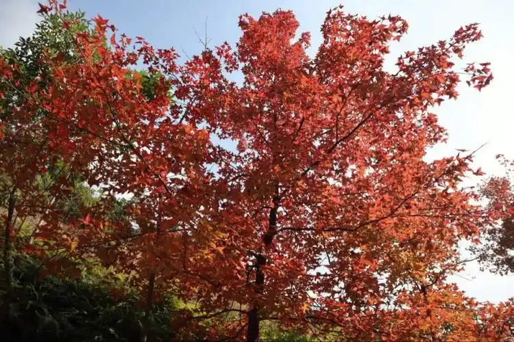全国四大观枫点之一,与江南红枫不同,明代时播种的古枫香林叶呈三角状