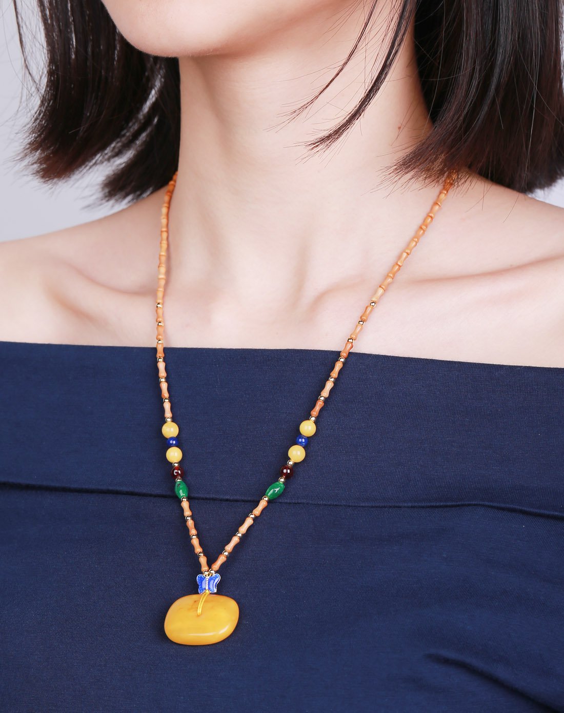 hwsa 赵薇代言-蜜蜡平安扣橄榄壳项链附证书