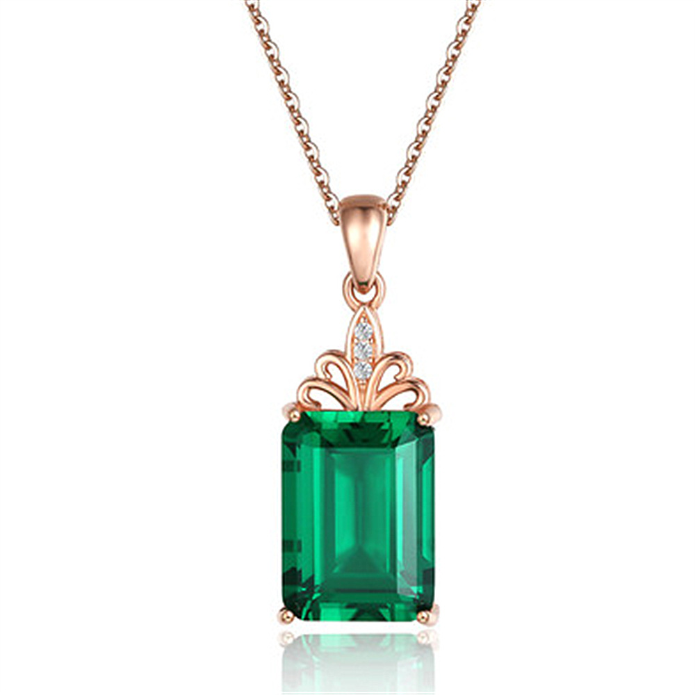 长方钻倒角绿钻祖母绿吊坠 韩版时尚镶钻锁骨链高档奢华绿钻吊坠