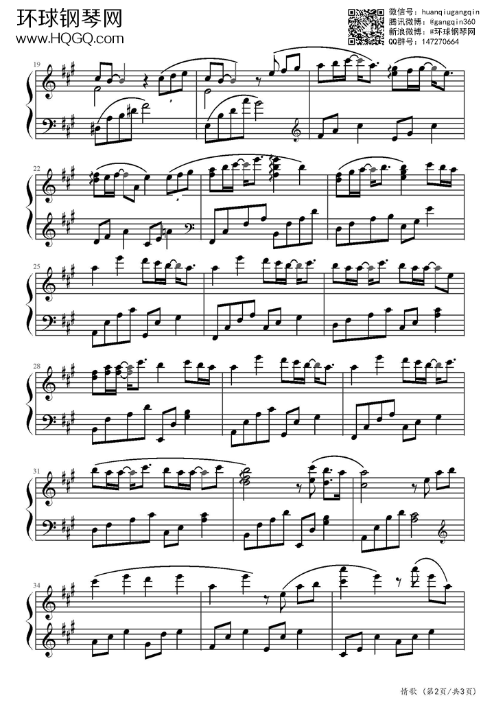 情歌(完整版)-梁静茹钢琴谱-环球钢琴网