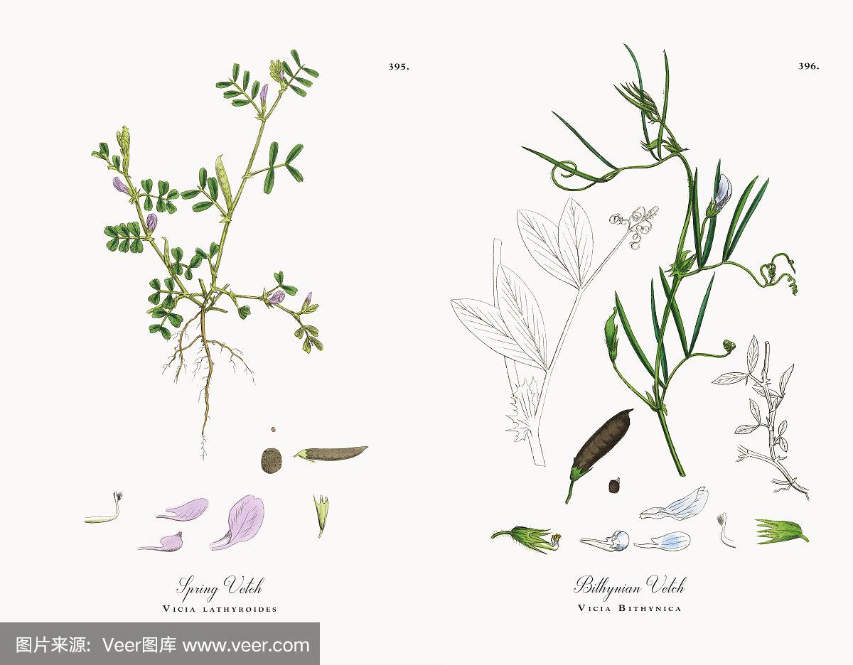 绘画插图,蚕豆属,植物学,背景分离,枝繁叶茂