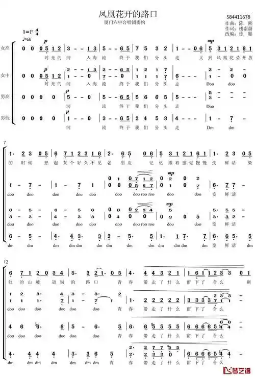 凤凰花开的路口合唱谱简谱-陈熙词/楼南蔚曲厦门六中合唱团-1