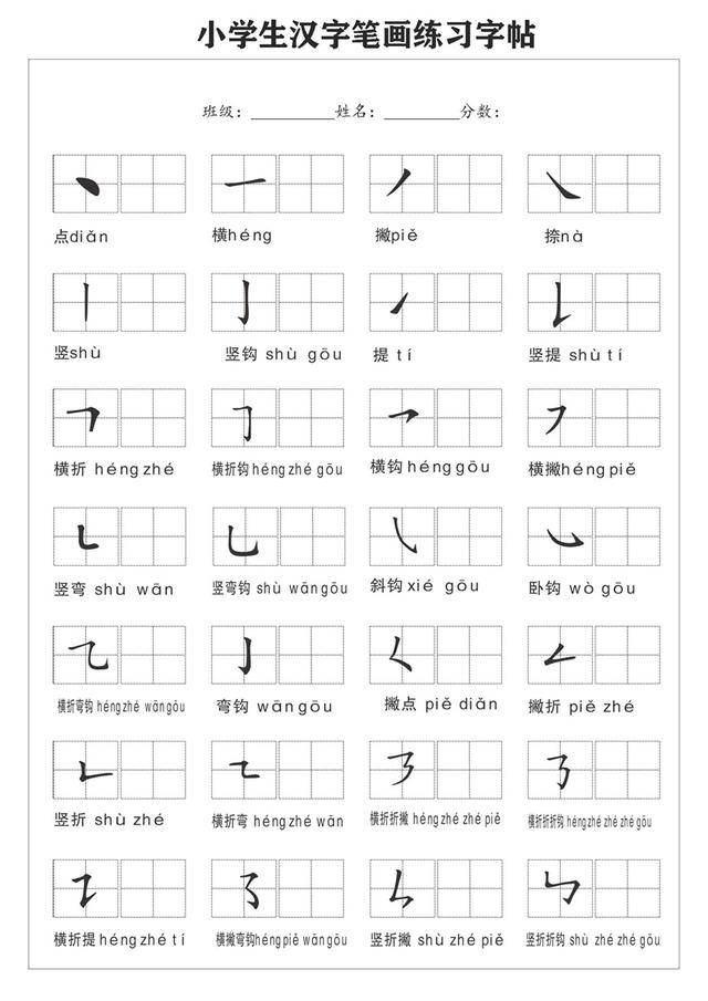 小学生汉字笔画练习字帖,常用笔画名称表,老师:做好笔控练习