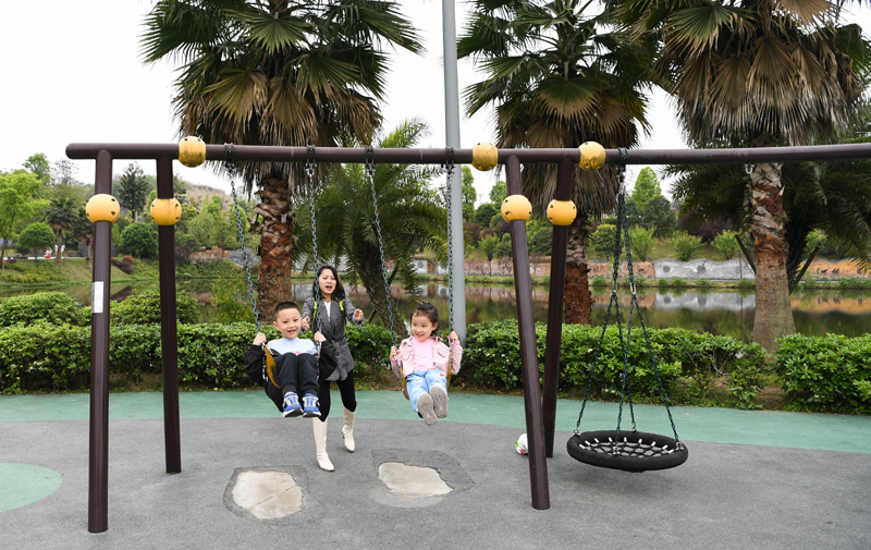 3月29日,小朋友在重庆璧山枫香湖儿童公园玩耍.