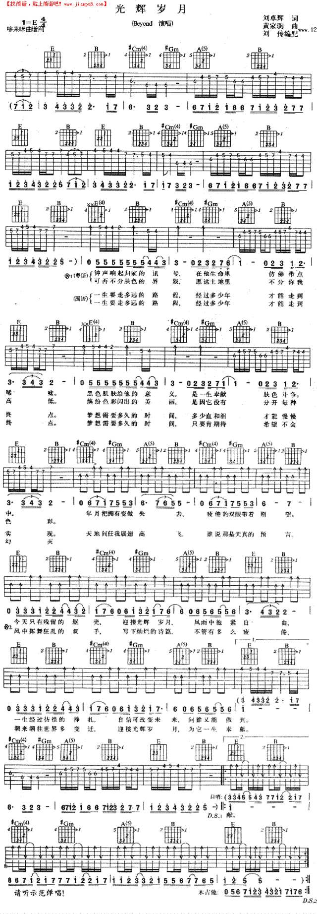 【光辉岁月 吉他谱】光辉岁月 原版吉他谱-明明简谱网