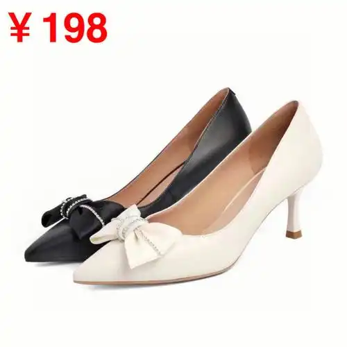 百丽2022春新款羊皮尖头蝴蝶结高跟女单鞋