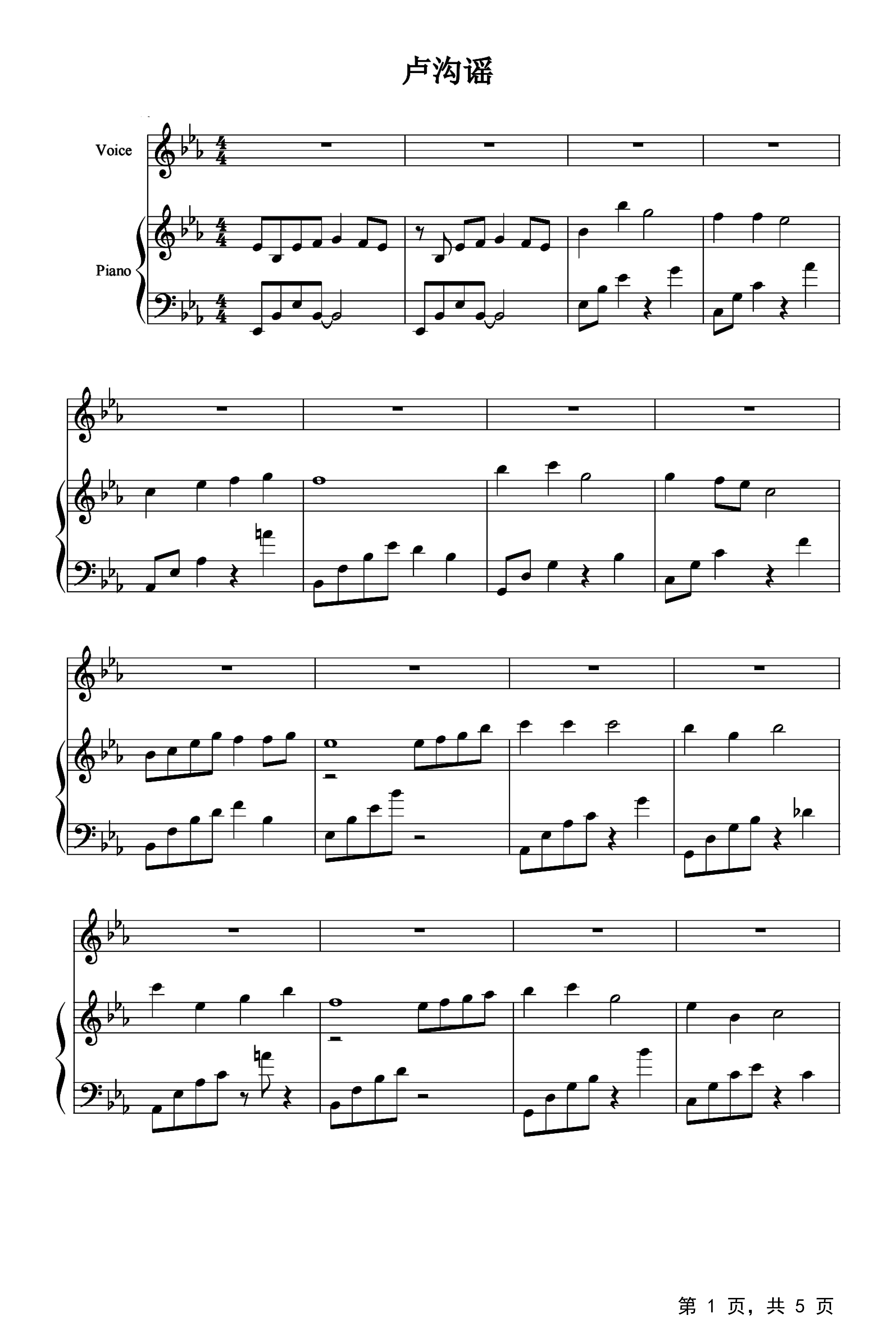 卢沟谣钢琴谱_李明圣_降e调_弹唱谱钢琴谱伴奏谱五线谱_钢琴谱|钢琴
