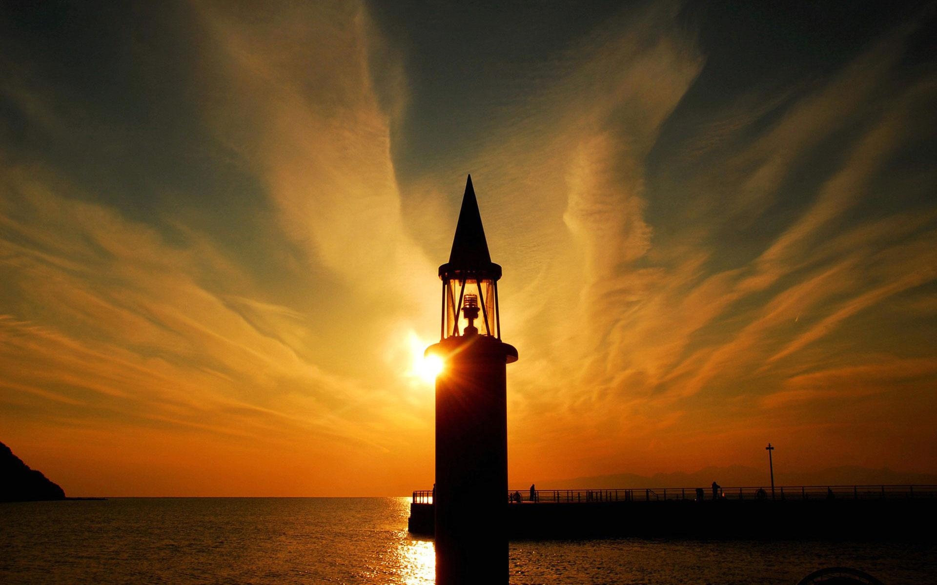 灯塔地平线日落壁纸1920x1080分辨率查看
