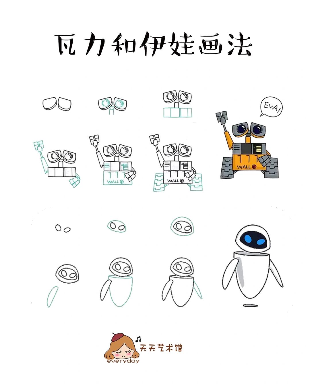 机器人伊娃卡通画画法 伊娃手绘教程 伊娃简笔画手绘画法