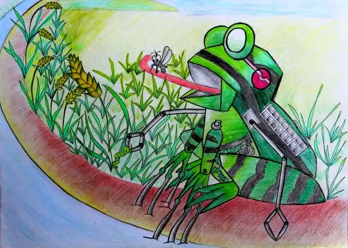 三等奖中学生科幻画智能捕虫蛙赏析