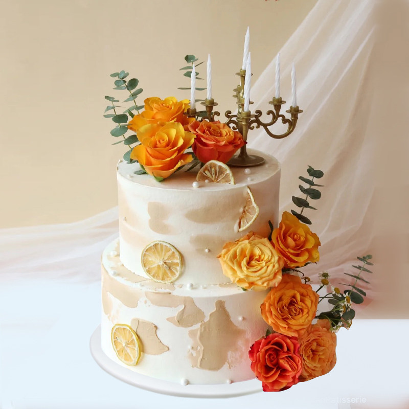 生日蛋糕模型仿真网红2021新款双层森系鲜花宫廷仿真水果